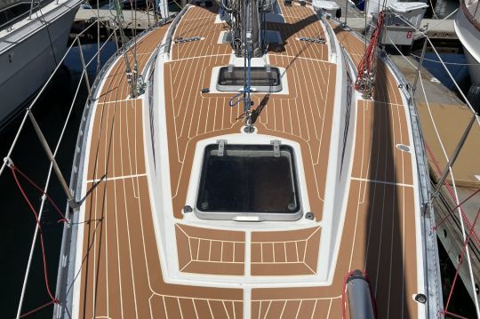 La espuma utilizada cumple los principales requisitos del sector náutico: resistencia al agua salada, resistencia a los rayos UV, alta tolerancia térmica, superficie antideslizante incluso mojada. No es porosa y está certificada sin formaldehído ni CFC, lo que facilita su aceptación en entornos normalizados (contratos públicos, astilleros ISO, reacondicionamientos reglamentados). Su rango de temperatura declarado (de -20°C a +80°C) permite utilizarlo sin precauciones especiales en nuestras latitudes, incluso en pleno verano.